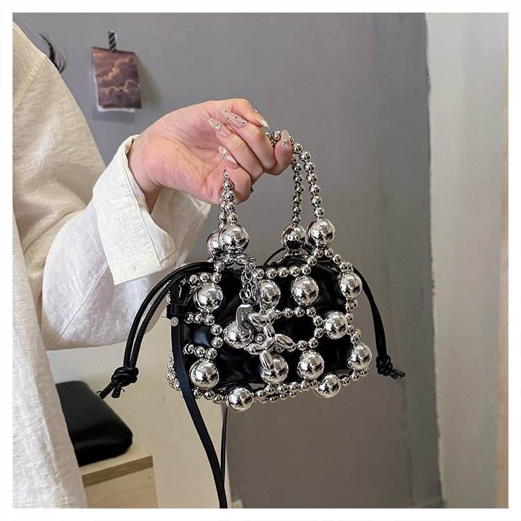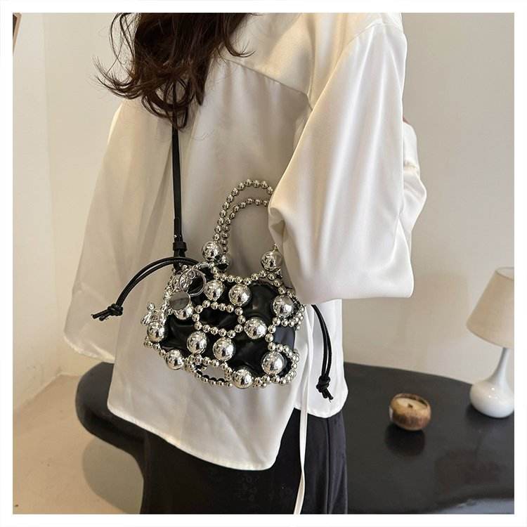 Bolso con cuentas de diseño de nicho, bolso tejido con cuentas de esqueleto exquisito a la moda, bolso cruzado de hombro para mujer con sentido Premium