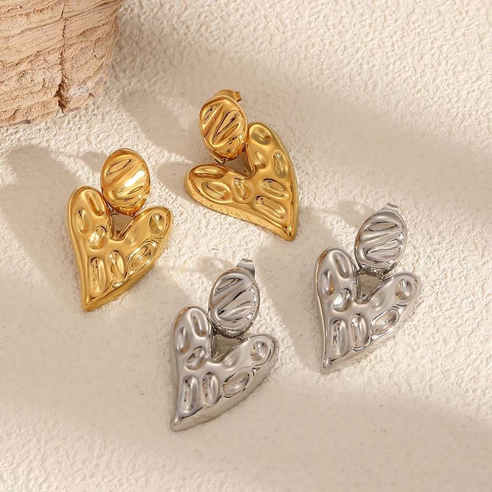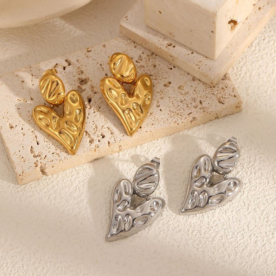 Aretes de Acero Inoxidable con Baño de Oro de 18K de la Serie Corazón de Lava de Niche Design, Elegantes y Modernos para Mujer, con Engaste de Titanio para Fiestas