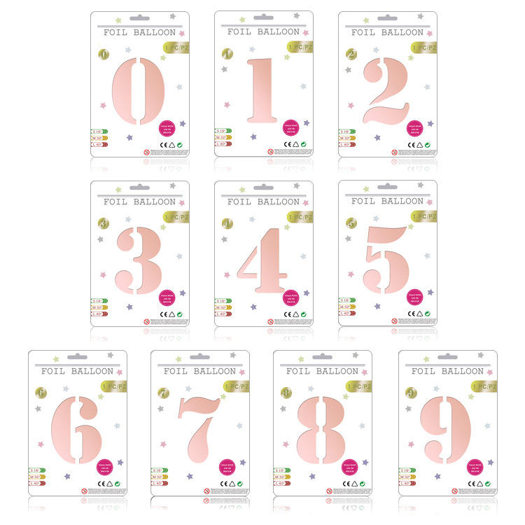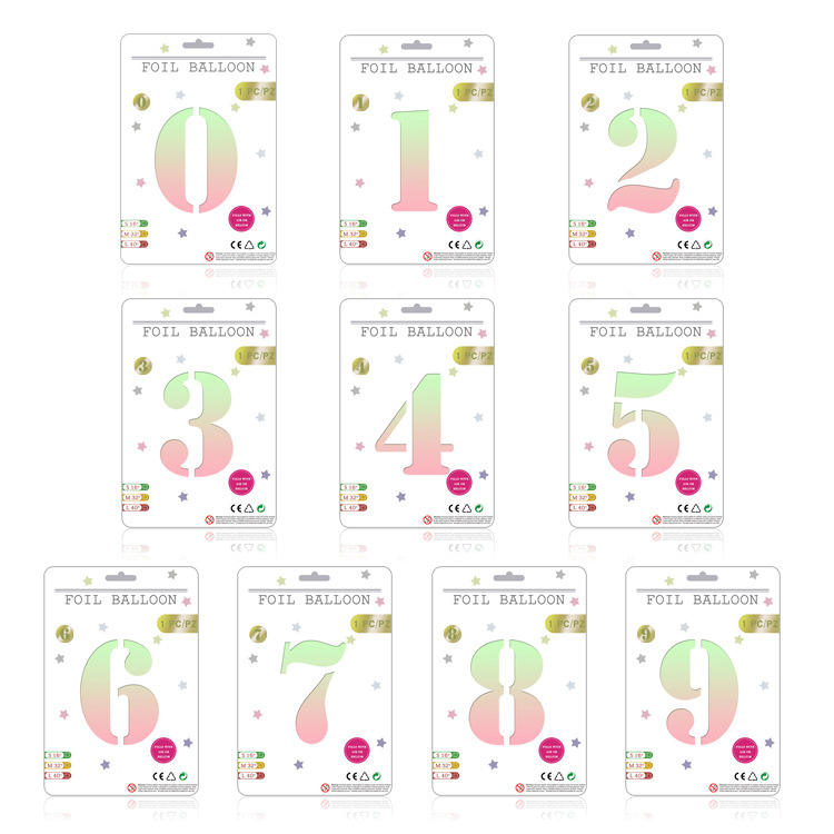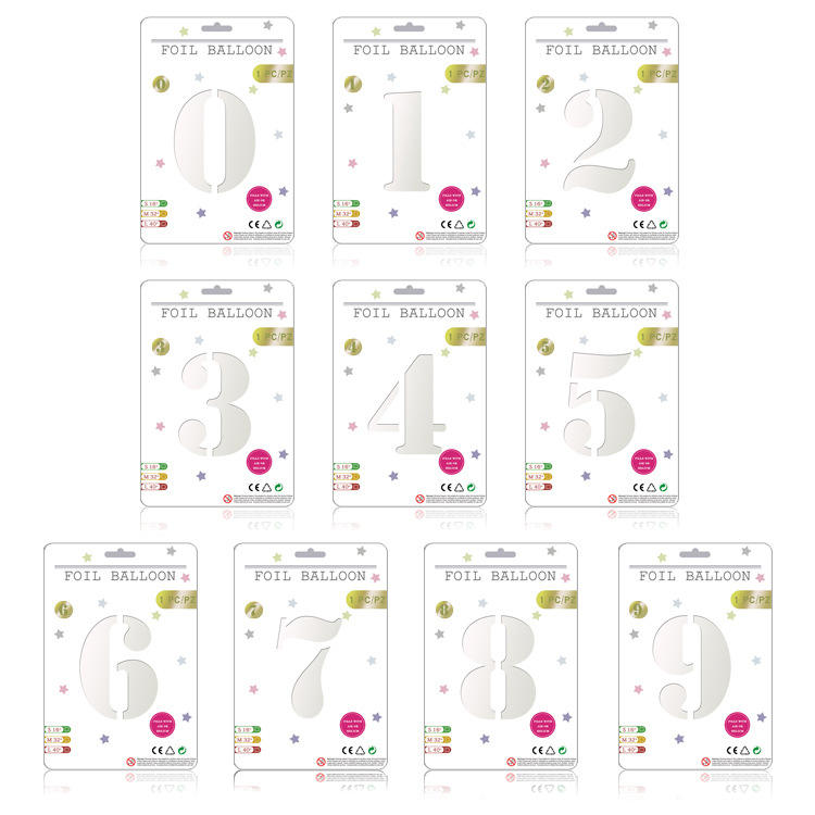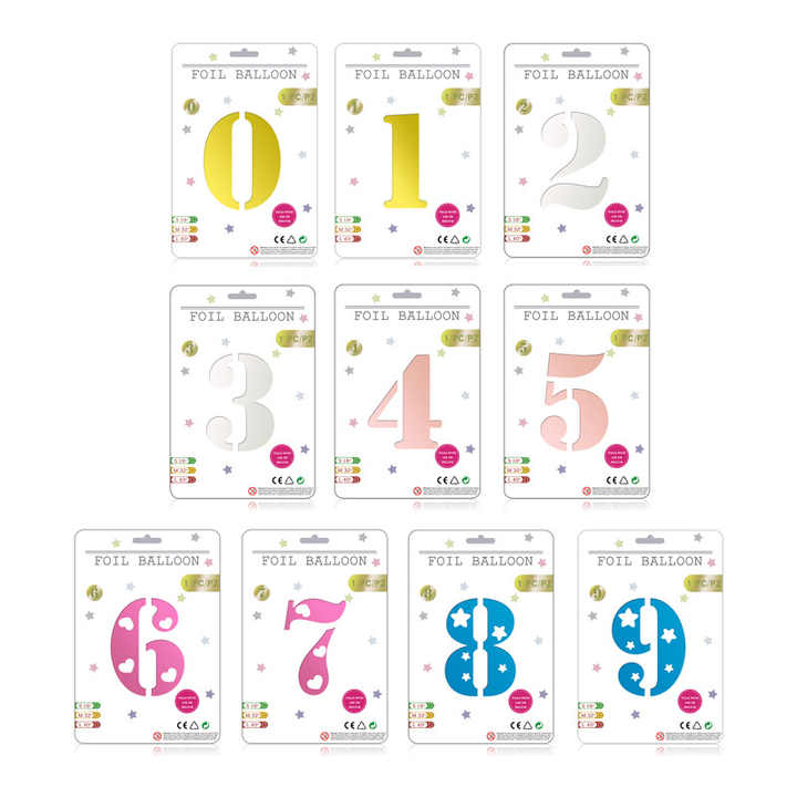 Nicro 32 pulgadas Número 0-9 Globo de papel de aluminio Tarjeta individual Embalaje Fiesta de cumpleaños Número Mylar Globos de papel de aluminio