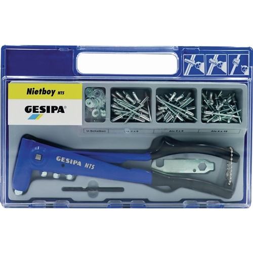 Nietboy - Juego de Remaches Ciegos de 135 Piezas con Estuche, GESIPA NTS D.4mm, Alicates para Manualidades