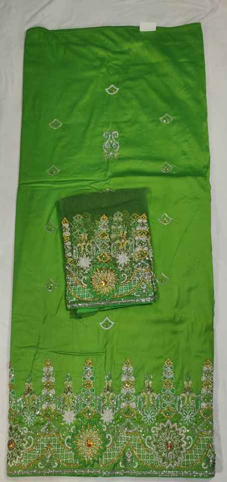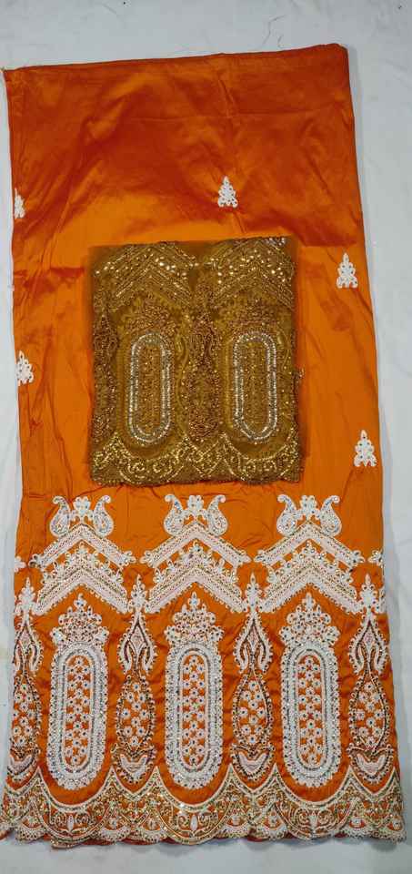 Atuendo Tradicional Nigeriano, Tela George con Lentejuelas y Patrón Floral, Tejido de Tafetán de Seda, Ropa Étnica