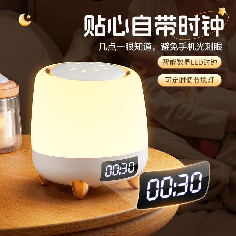 Lámpara de noche redonda recargable con control remoto USB y reloj digital para dormitorio