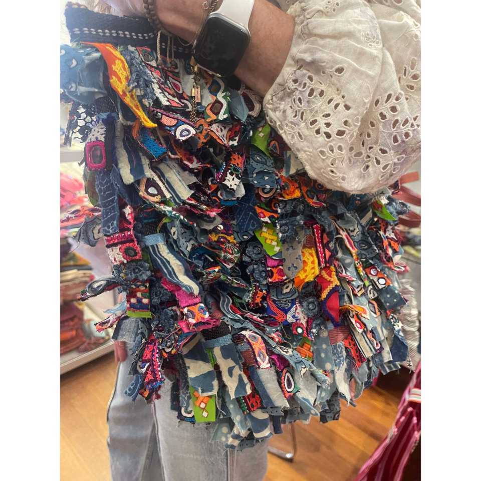 Bolso Bohemio Night Magic con Diseño de Paneles, Cierre Abierto y Decoración Bordada para Compras