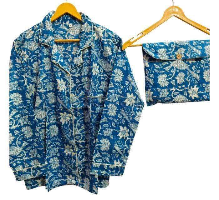 Conjunto de Pijamas de Algodón Estampado para Dormir, Conjunto de Pijamas de Algodón Indio Estampado a Mano para Dormir