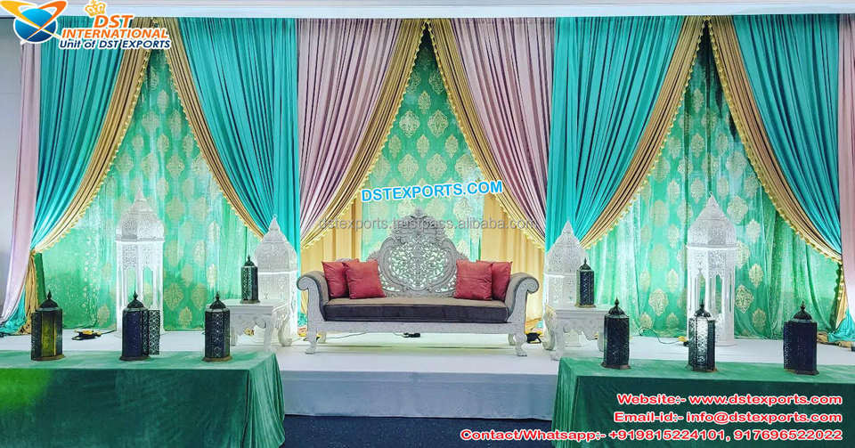 Nikah Stage Zari Work telón de fondo configuración ceremonia de boda musulmana Zari trabajo telón de fondo indio Zari trabajo telón de fondo para escenario de boda