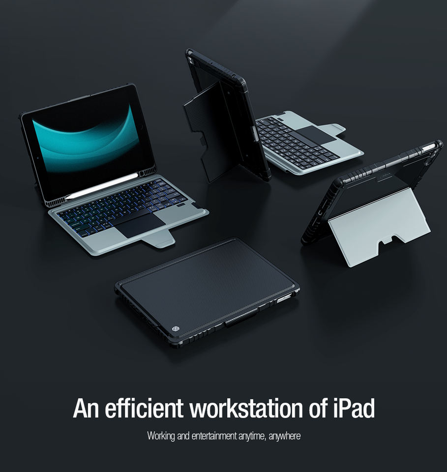 Funda de teclado de parachoques desmontable Nillkin para iPad 10,2 2019/2020/2021, funda a prueba de golpes con soporte de protección de cámara deslizante