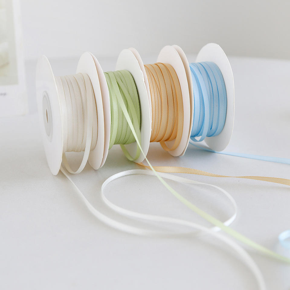 Nine-Colored Ribbon Satin Ribbon Spool 3mm Solid Woven Polyester Gift Wrapping Valentine'S Day DIY Bouquet Making Material