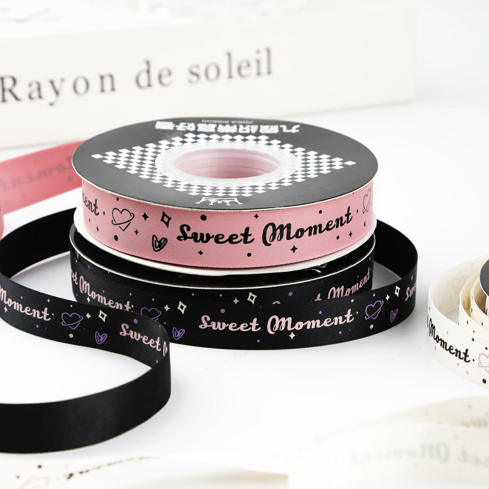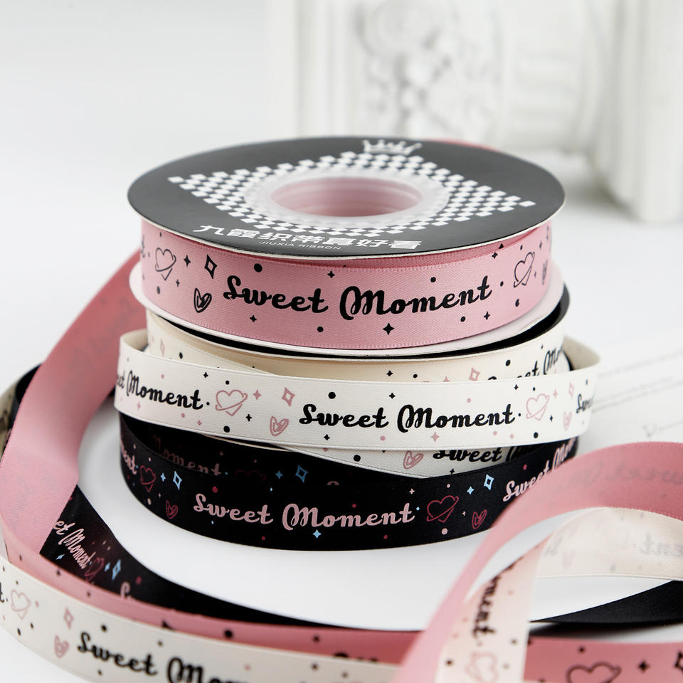 Nine-Colored Ribbon Sweet Moment Printed Satin Ribbon Spool Valentine'S Day Gift Packaging Decorations
