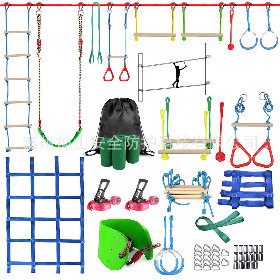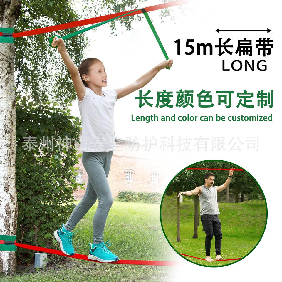 Set de Slackline Ninja de 15m, Equipo de Entrenamiento de Equilibrio de Nailon para Niños y Adultos