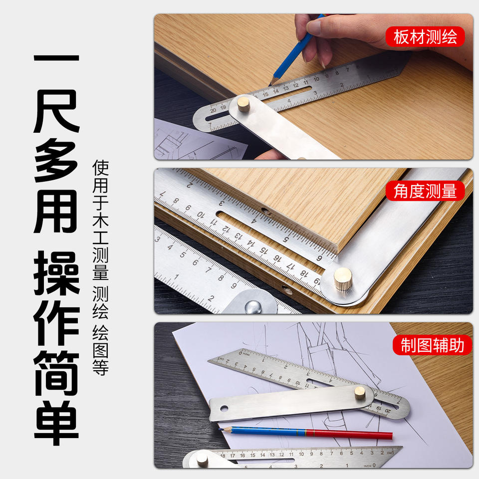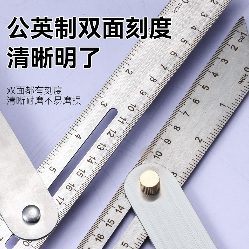 Niu Xiang Carpenter's Angle Ruler Stainless Steel 180 Degree Adjustable Dual Scale For Woodworking Measurement