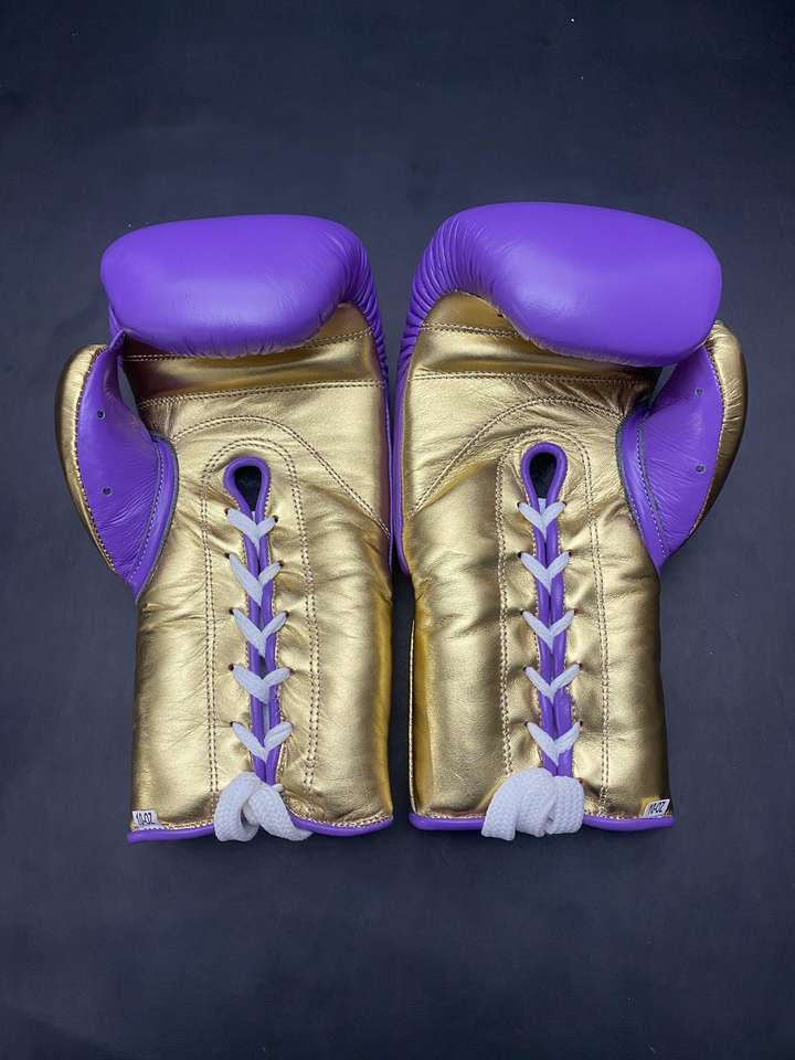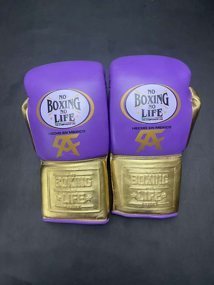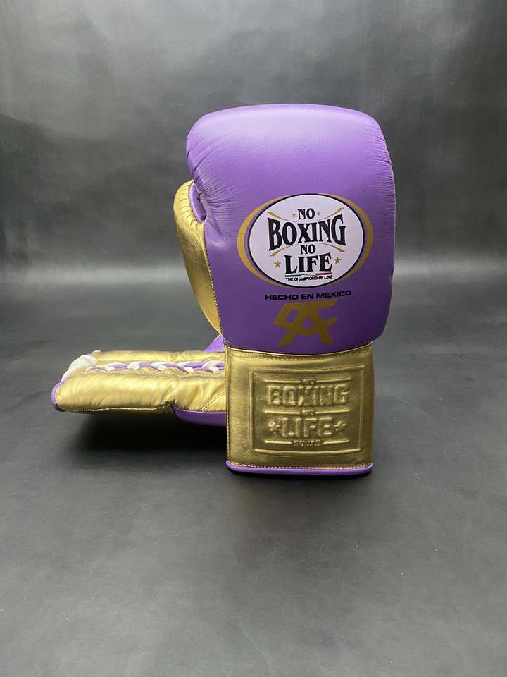 No Boxing No Life Guantes de boxeo con cordones Acolchado grueso de 4 capas Absorbe la humedad Cuero de vaca púrpura/dorado para entrenar Lucha