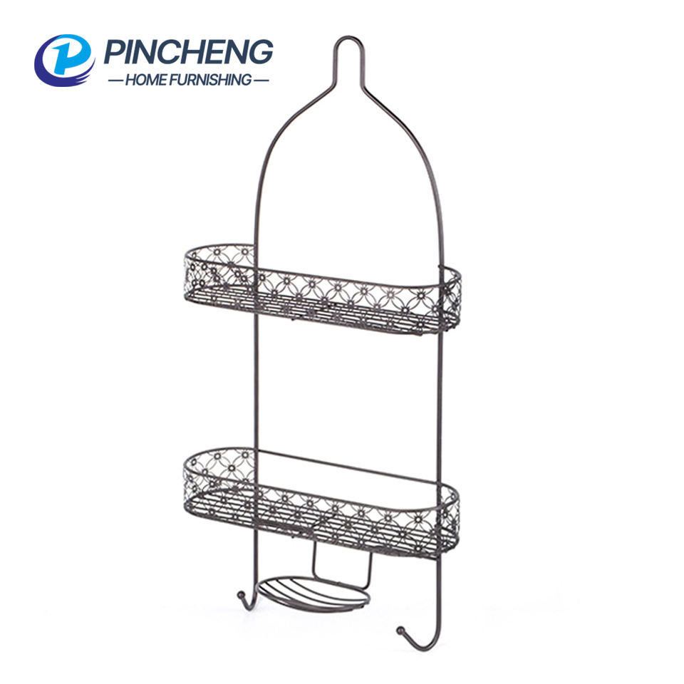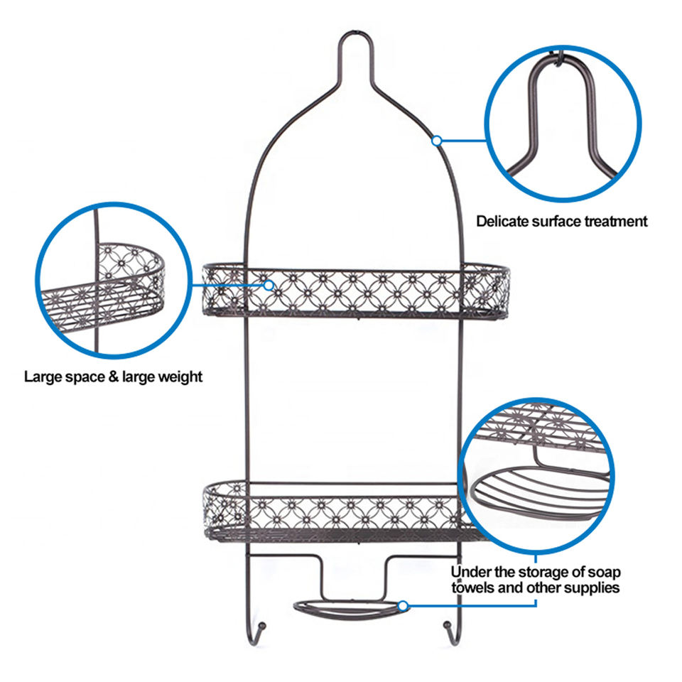 Estante de almacenamiento para toallas de baño sin taladro, organizador de baño de hierro resistente al óxido, cesta colgante para ducha con ganchos