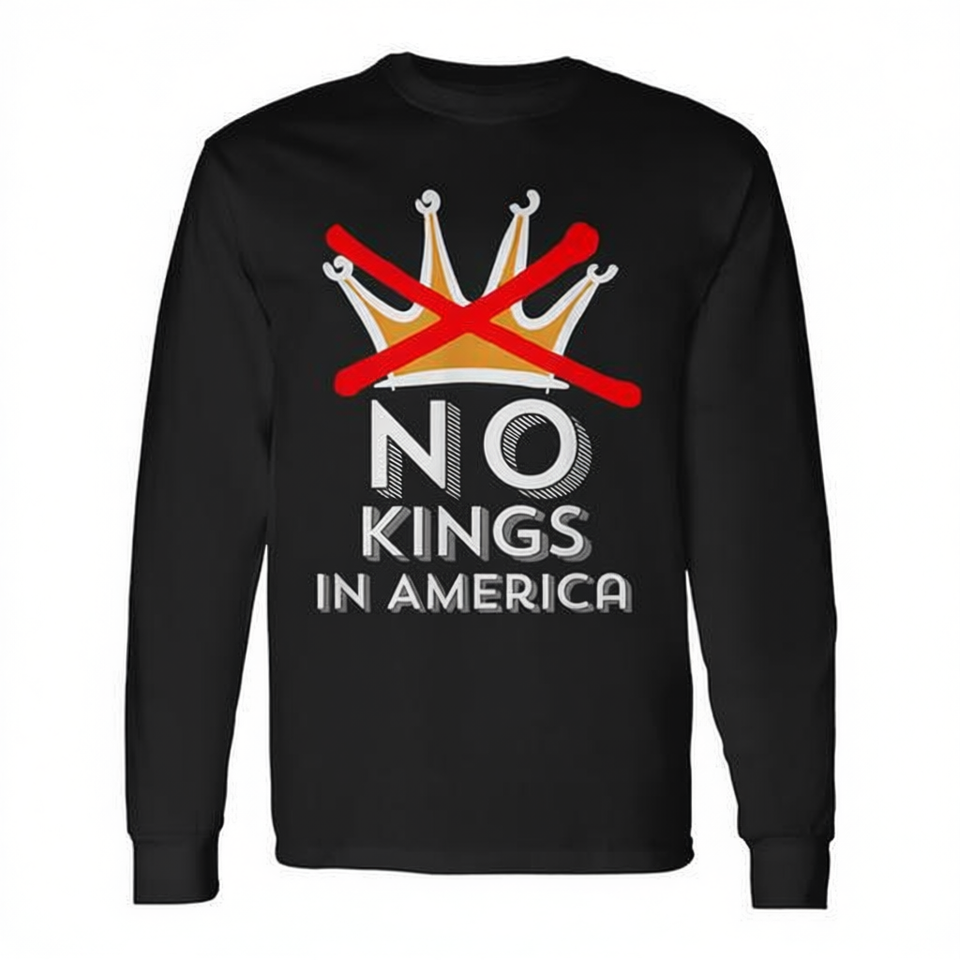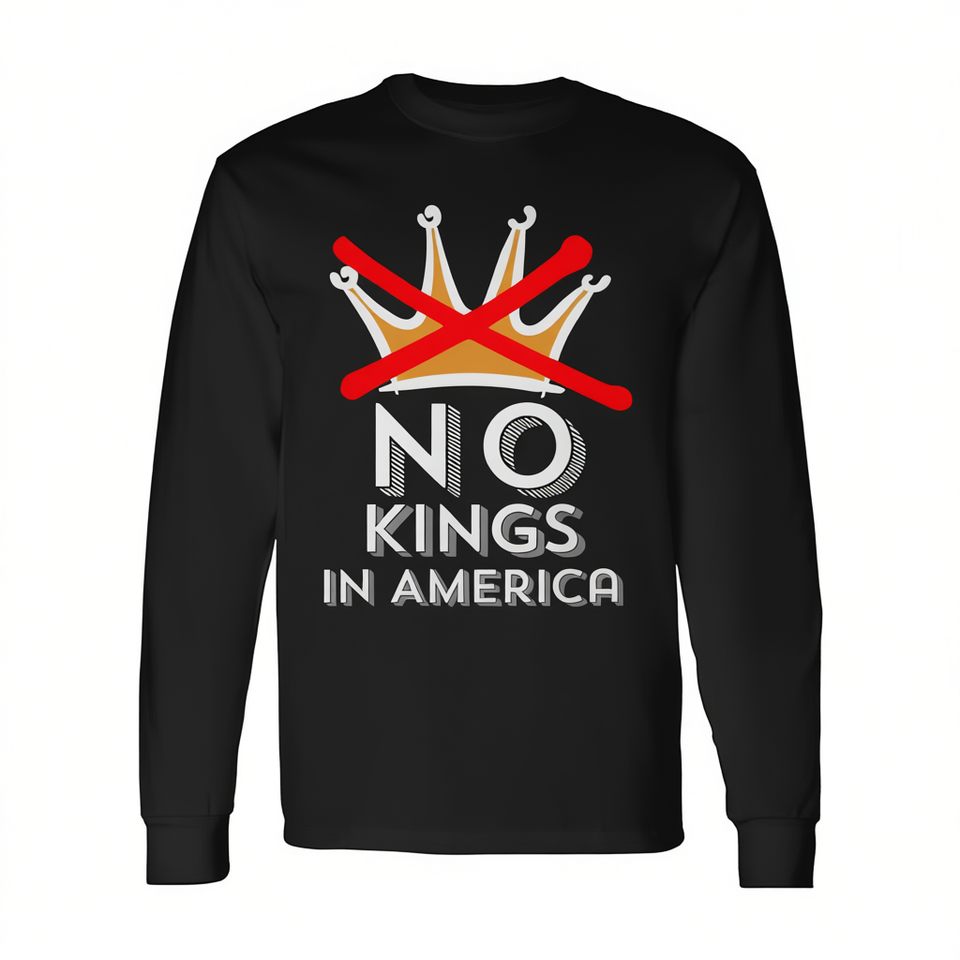 Camiseta de manga larga No Kings In America, unisex, con cuello redondo, talla para adultos, camiseta con estampado patriótico