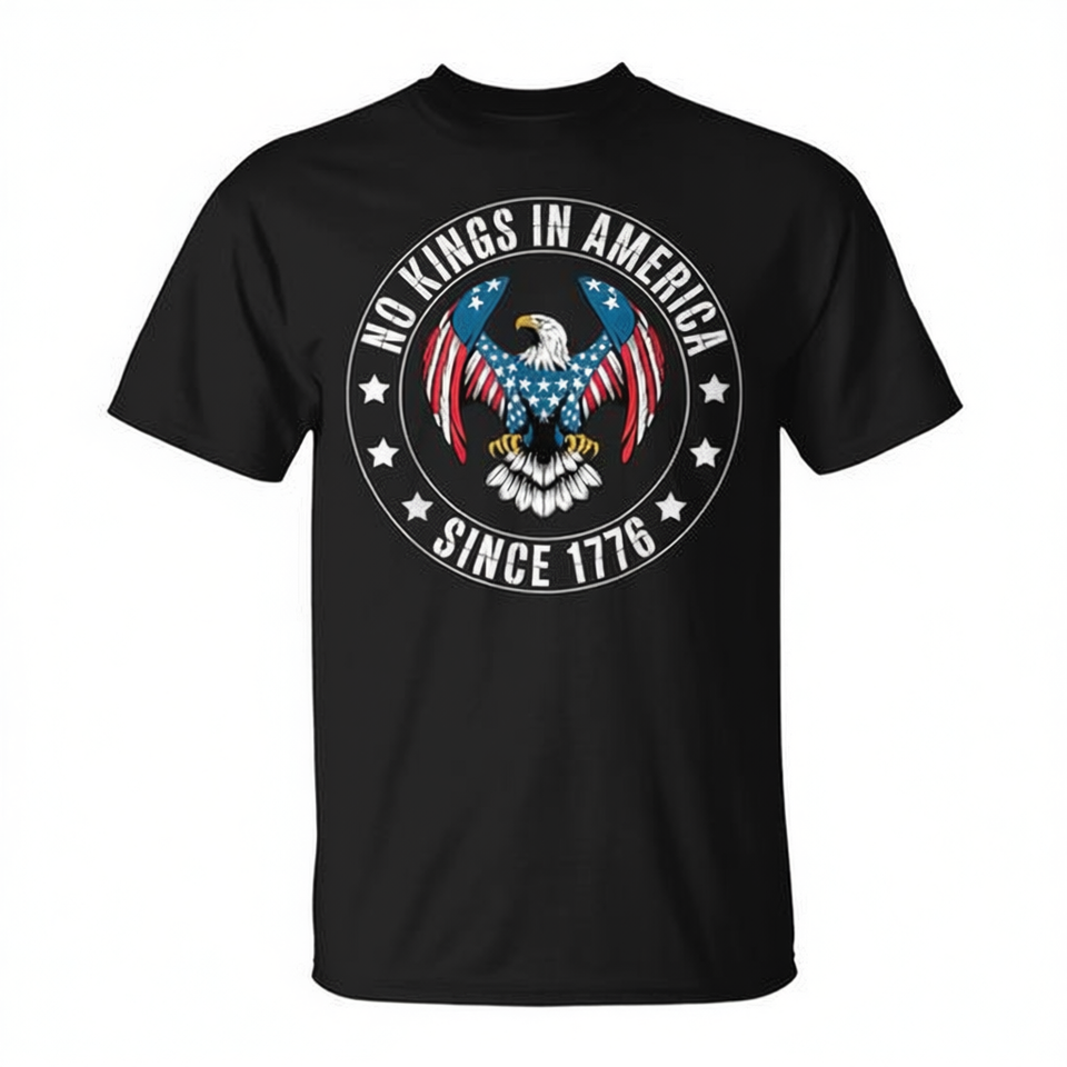 Camiseta No Kings In America Since 1776 con diseño de águila patriótica, camisa negra para hombre
