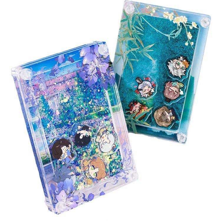 Llavero acrílico personalizado sin MOQ, llavero de arena movediza de anime, llavero líquido Boba, llavero de aleación de zinc impreso con UV