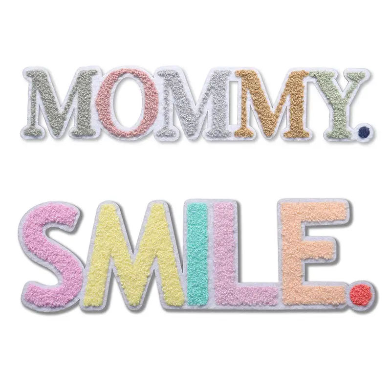 Sin logotipo personalizado mínimo, parches de chenilla de flores grandes para planchar, PVC autoadhesivo para sombreros, sudaderas, corazón, lentejuelas hechas a mano