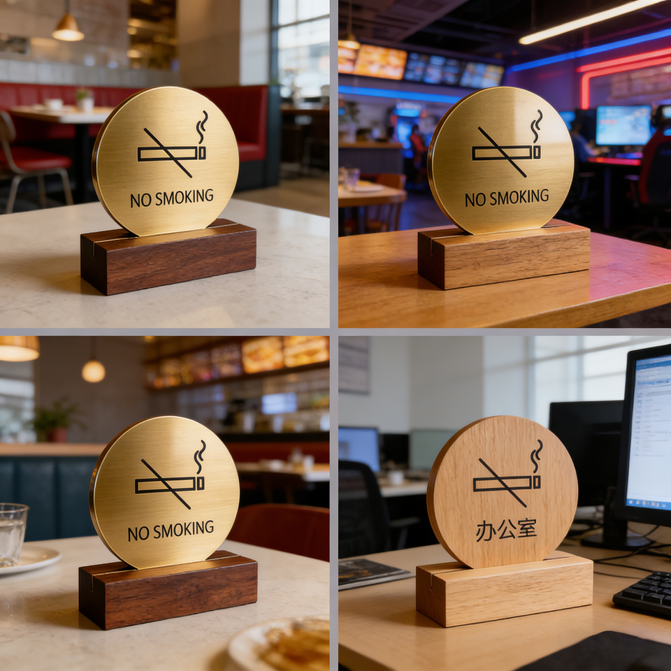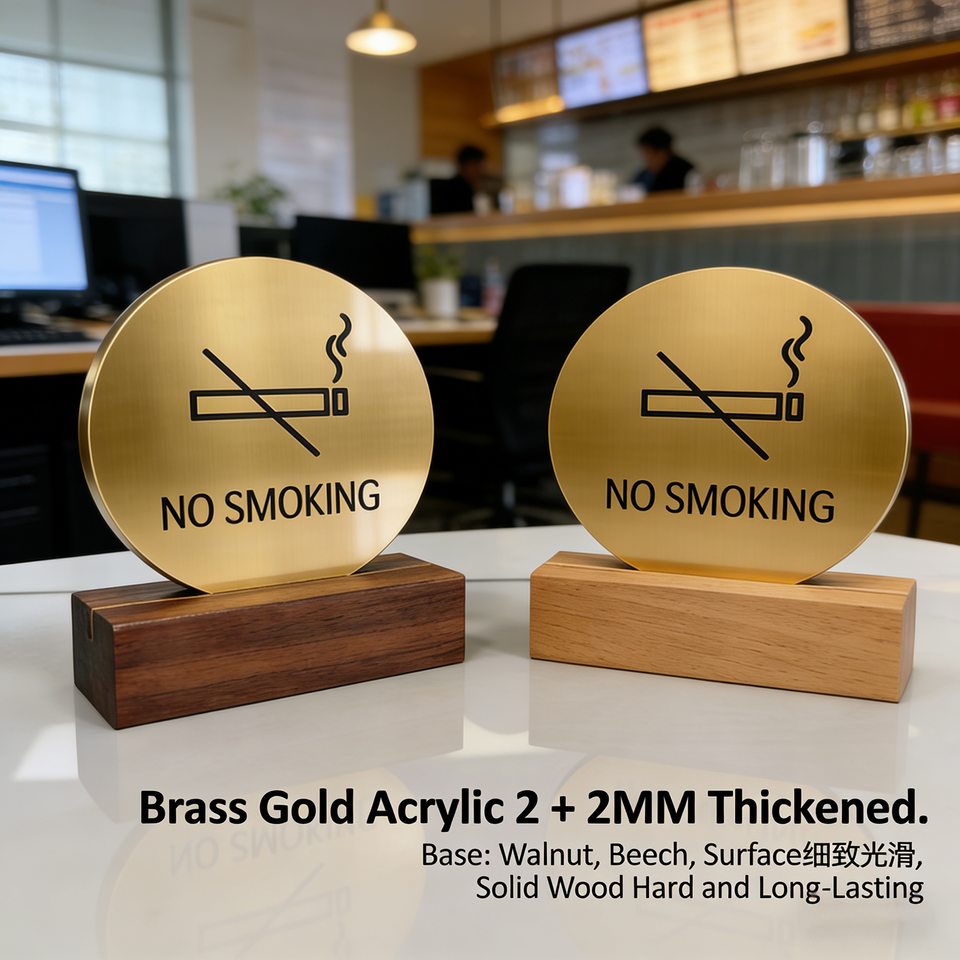 Letrero de Mesa Prohibido Fumar, Doble Cara, Acrílico, Base de Madera Sólida, Letrero de Recordatorio para Hotel, Restaurante, Oficina, ODM, OEM