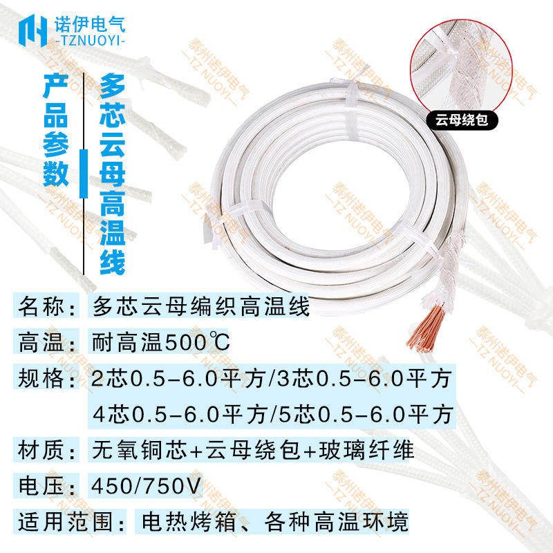Cable de Alta Temperatura Noi 2346, Aislamiento de Mica GN500, Cubierta de Fibra de Vidrio, Conductor de Cobre, Uso Industrial