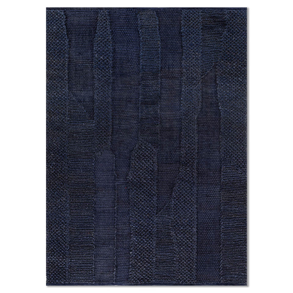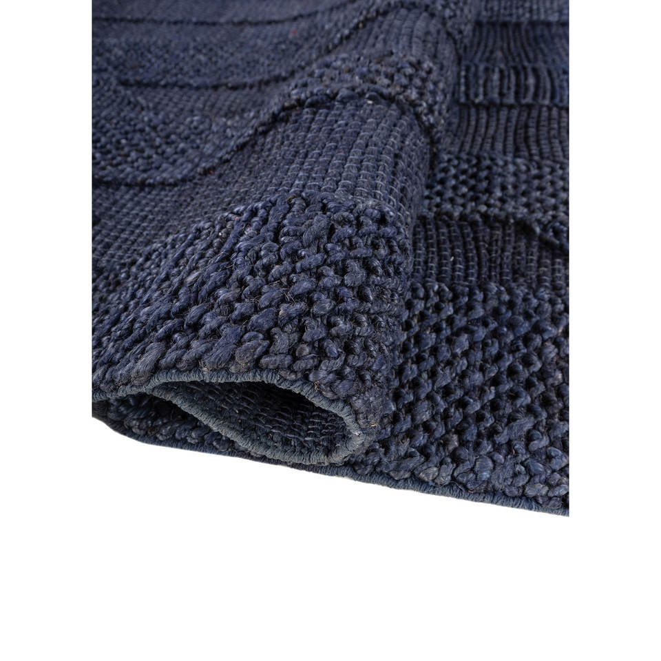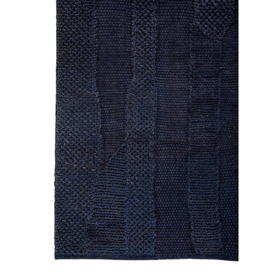 Alfombras Rectangulares Hechas a Mano Nomadic Threads PDJT-748, Tejidas Planas en Yute y Cáñamo con Rayas Azules, para Entrada, Dormitorio y Pasillo