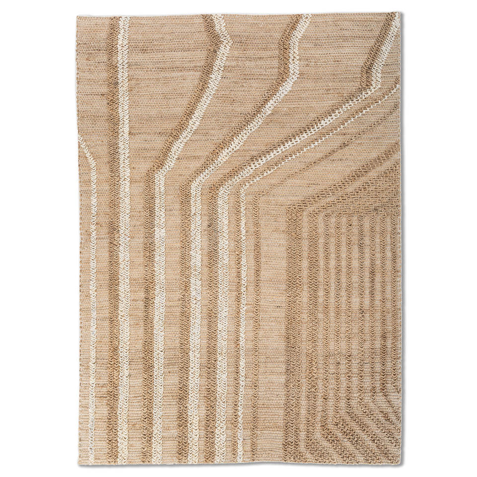 Alfombras de Yute y Cáñamo de Tejido Plano Nomadic Threads PDJT-753, Color Marfil, Rectangulares y a Rayas, para Pasillos, Habitaciones y Salas de Estar