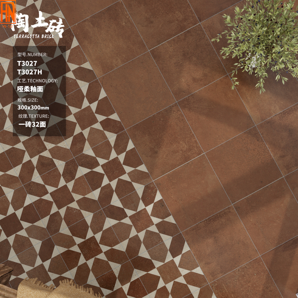 Baldosas de Porcelana Antideslizantes Rústicas de Hierro Rojo de 300x300mm 600x600mm, Alta Resistencia al Deslizamiento para Balcón, Patio, Diseño con Patrón Floral