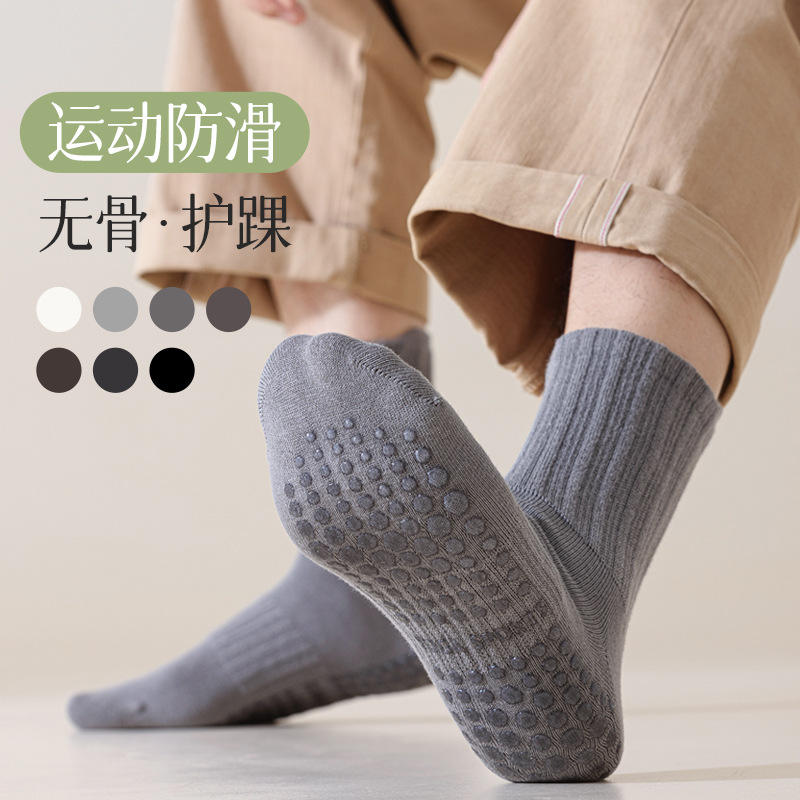 Non-Slip Yoga Socks Solid Color Cotton Mid-Calf For Pilates Fitness Women Men Seamless Anti-Slip Sport Socks