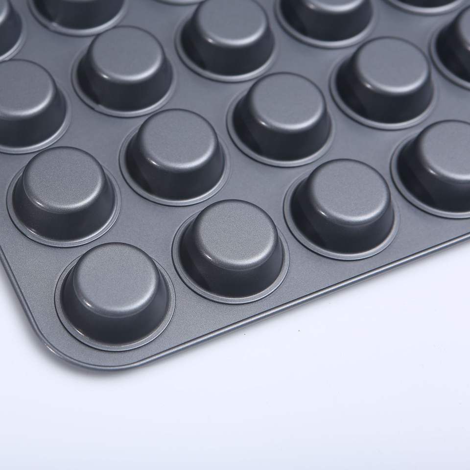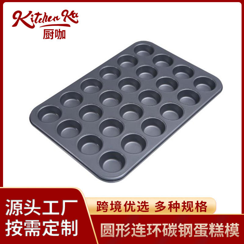 Molde antiadherente para pasteles, herramientas redondas para hornear, molde para cupcakes de fondo plano y alto con 24 cavidades para uso en repostería casera
