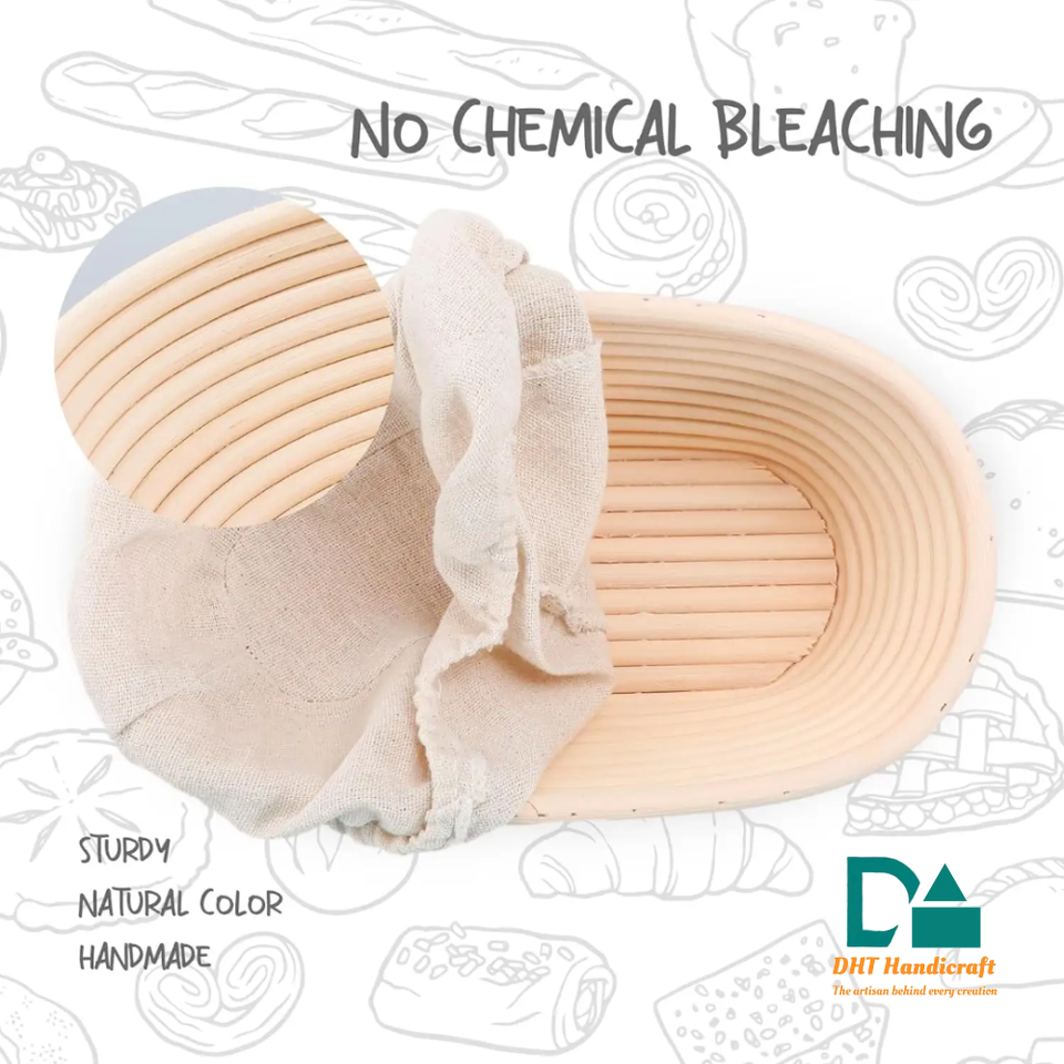 Cesta ovalada de ratán natural antiadherente y ecológica para fermentar masa con forro para masa madre (Vietnam)