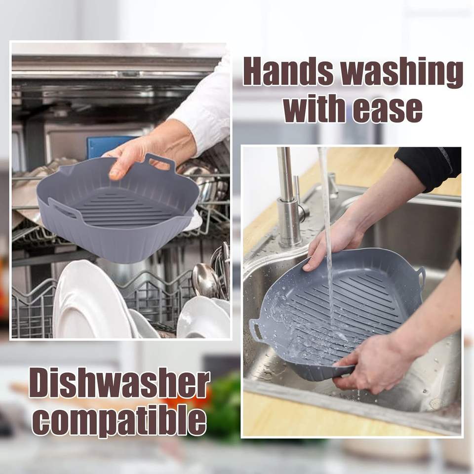 Bandeja para hornear de silicona reutilizable antiadherente, revestimientos cuadrados para freidora de aire, olla para freidora de aire plegable de silicona, revestimiento para freidora de aire de 8,5 pulgadas