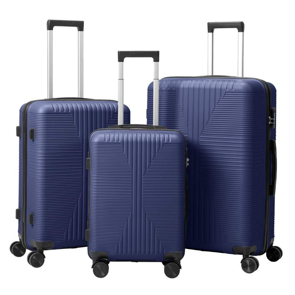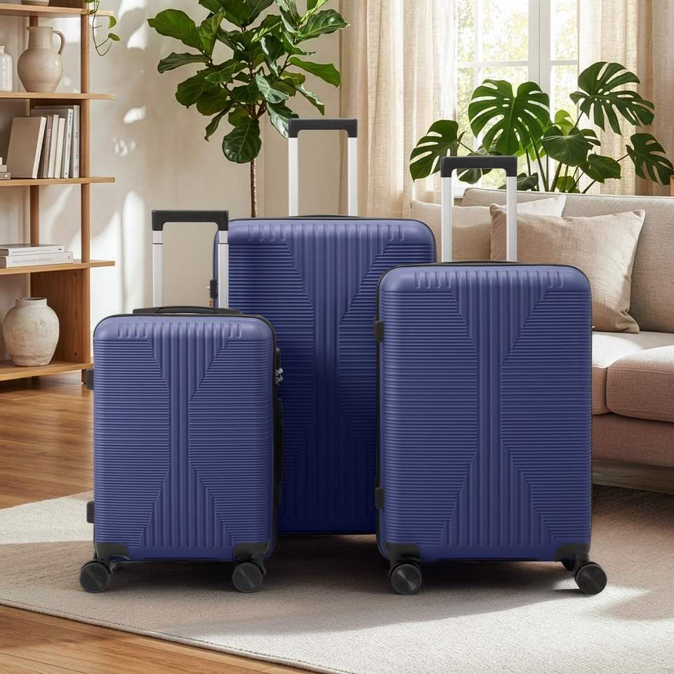 Maleta con Ruedas 3 en 1, Color Azul Marino, de Polipropileno, Sin Candado TSA, Tamaños de 20, 24 y 28 Pulgadas, para Conjuntos de Equipaje
