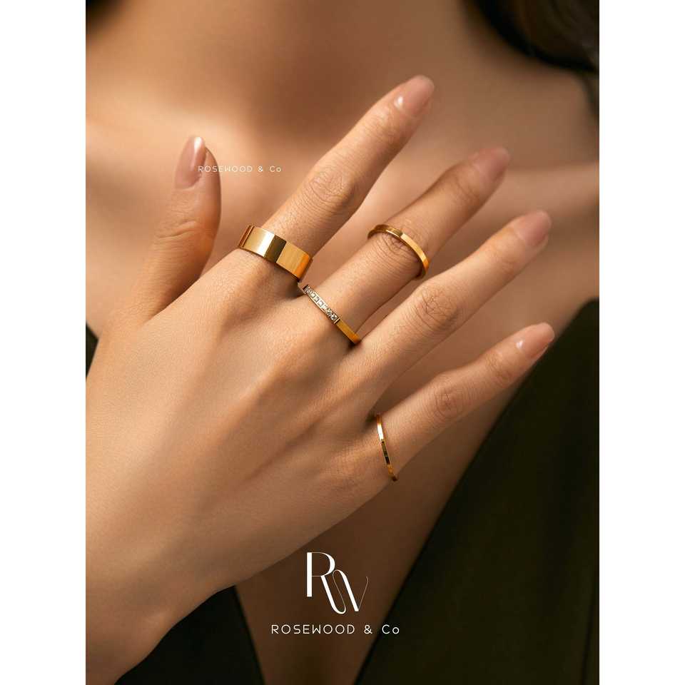 Anillo de Oro de 18K con Incrustaciones de Diamantes de Imitación, Resistente al Deslustre, Banda Impermeable de 2mm, Estilo Moderno, Regalo para Ella o para Mamá