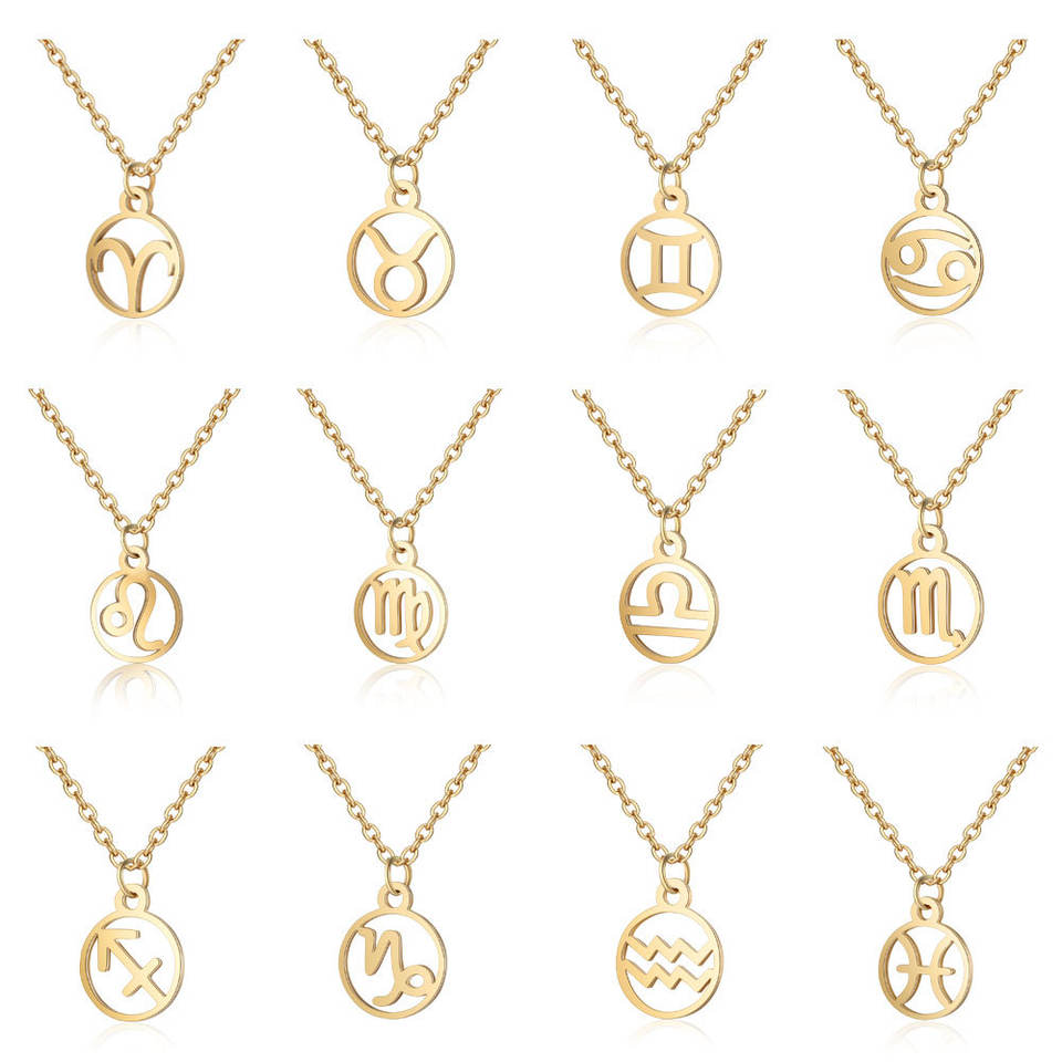Nombre del producto:18K oro horóscopo Zodiaco signo hueco moneda colgante collar