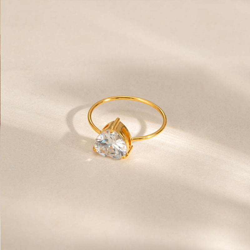 Anillos Resistentes al Deslustre e Impermeables de Buena Calidad, Anillo de Acero Inoxidable 316L Chapado en Oro PVD de 14k y 18k con Zirconia, Anillo de Compromiso para Mujer