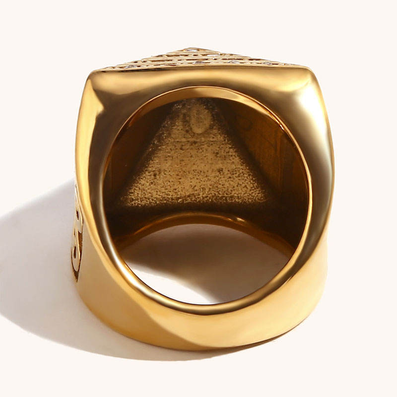 Anillos Resistentes al Deslustre e Impermeables de Buena Calidad, Chapados en Oro PVD de 14k y 18k, Anillo de Pirámide de Acero Inoxidable 316L para Hombre