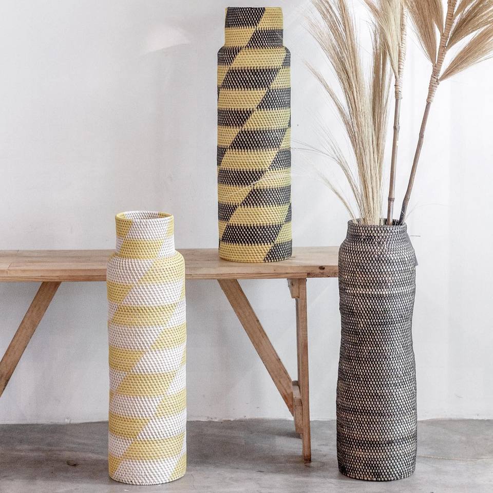 Jarrón de Mimbre Hecho a Mano Irrompible, Grande, Alto, Decoración del Hogar, Jarrones de Ratán Tejidos a Mano al por Mayor