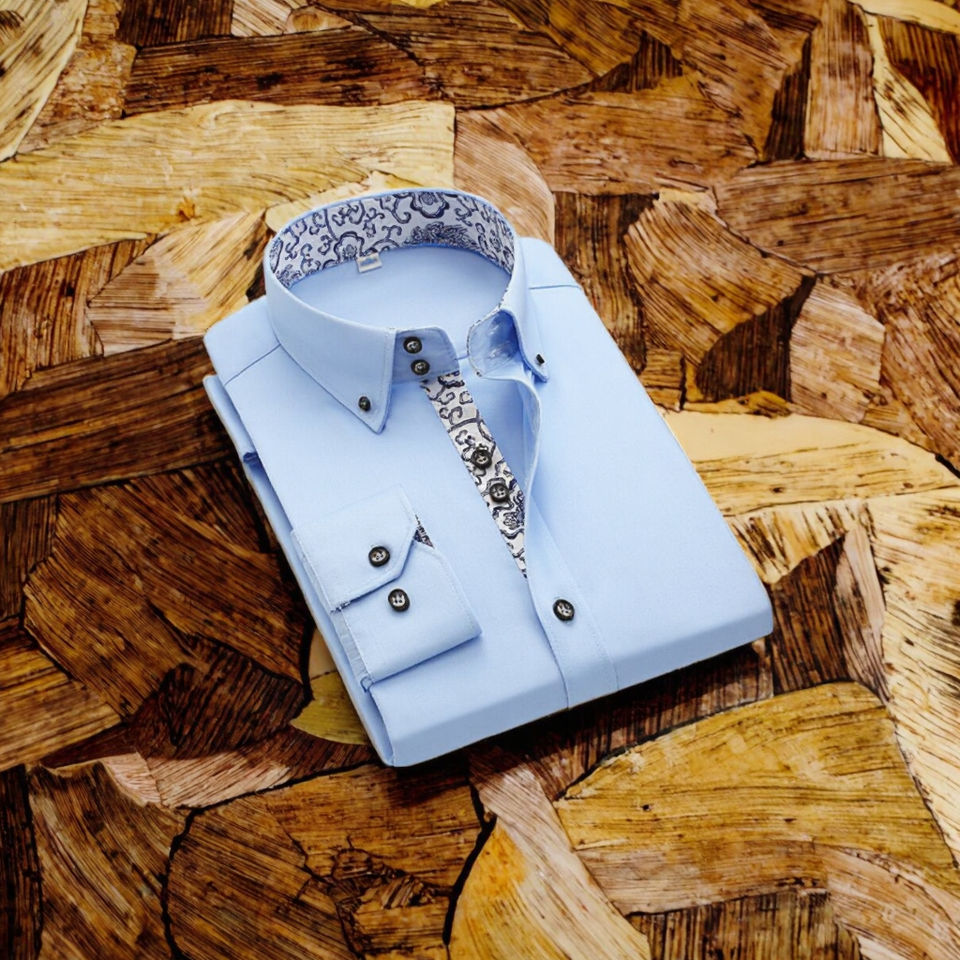 Camisa de Vestir Formal de Manga Larga para Hombre, Estilo Italiano, de Alta Calidad, Sin Plancha, con Botones Cubiertos de Algodón, Fácil de Cuidar