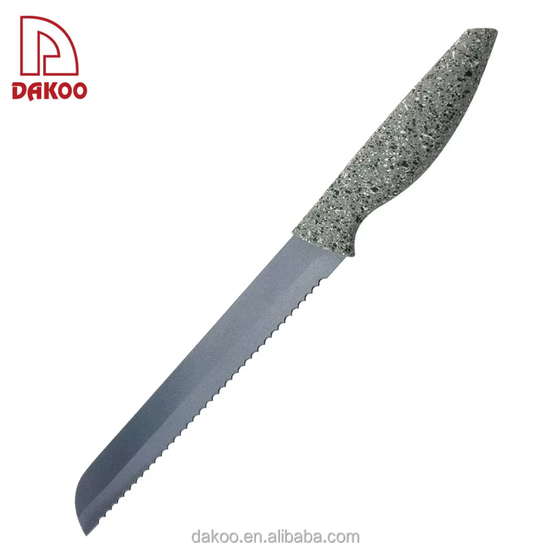 Hoja de revestimiento antiadherente Cuchillo de arco de pan de 8 pulgadas con mango pintado con patrón