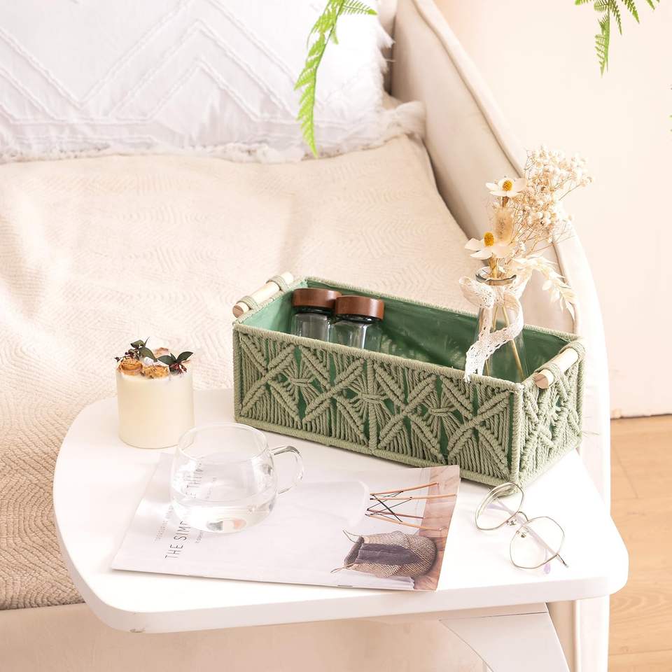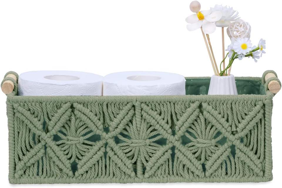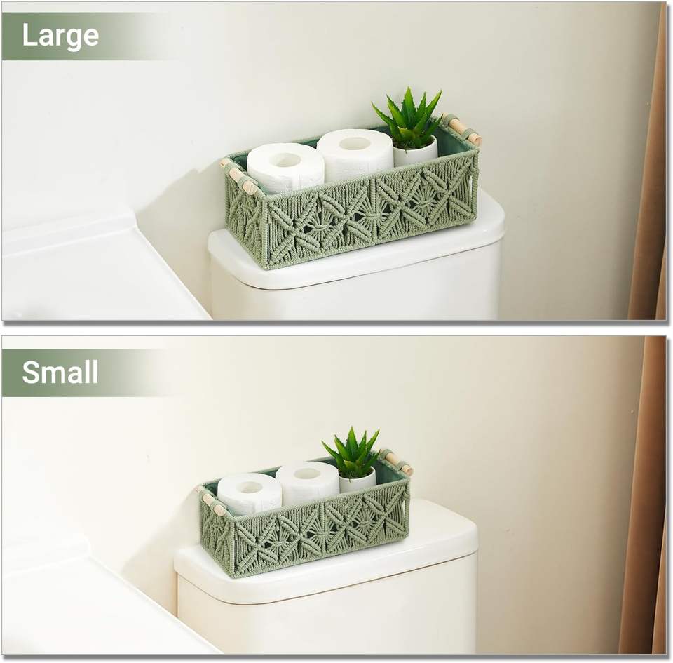 Cestas de Almacenamiento de Macramé Nonam, Cajas de Almacenamiento Tejidas para la Organización del Hogar, Estante para Tanque de Inodoro, Organizador de Gabinete, Juego de 2 Cestas