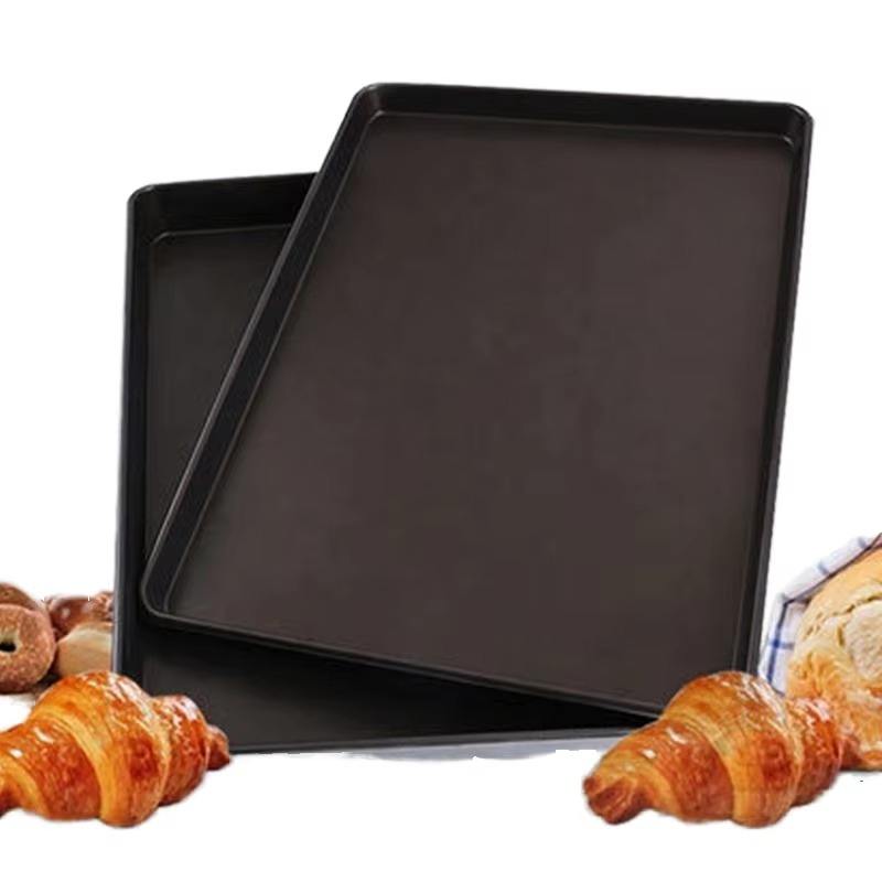 Bandeja para hornear de metal negro antiadherente, bandeja rectangular de metal para galletas y pan para hornos, panadería, cocina y restaurante