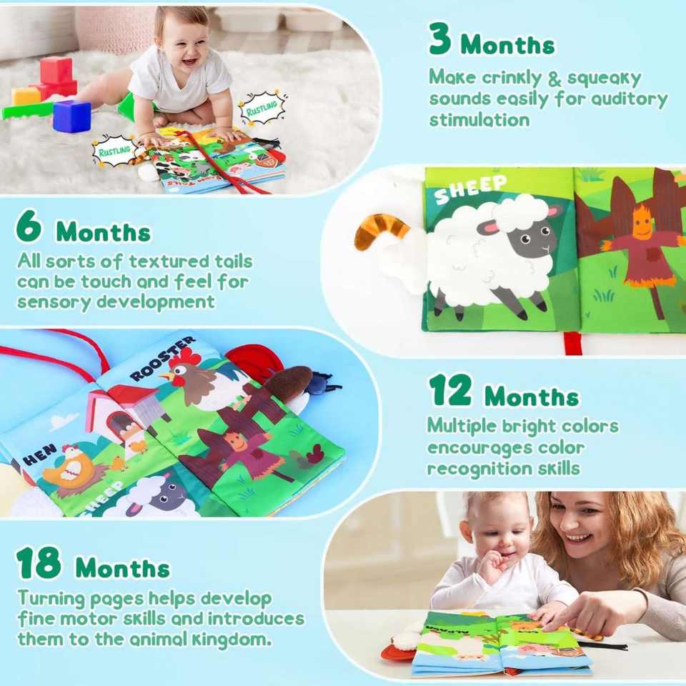 Libros de Tela No Tóxicos para Bebés, Libros de Actividades con Textura Arrugada para Niños y Niñas, Juguetes Educativos Tempranos
