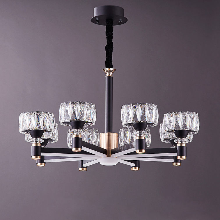 Lámpara de techo nórdica Comedor Hotel Iluminación de 6 brazos Araña negra con cristal
