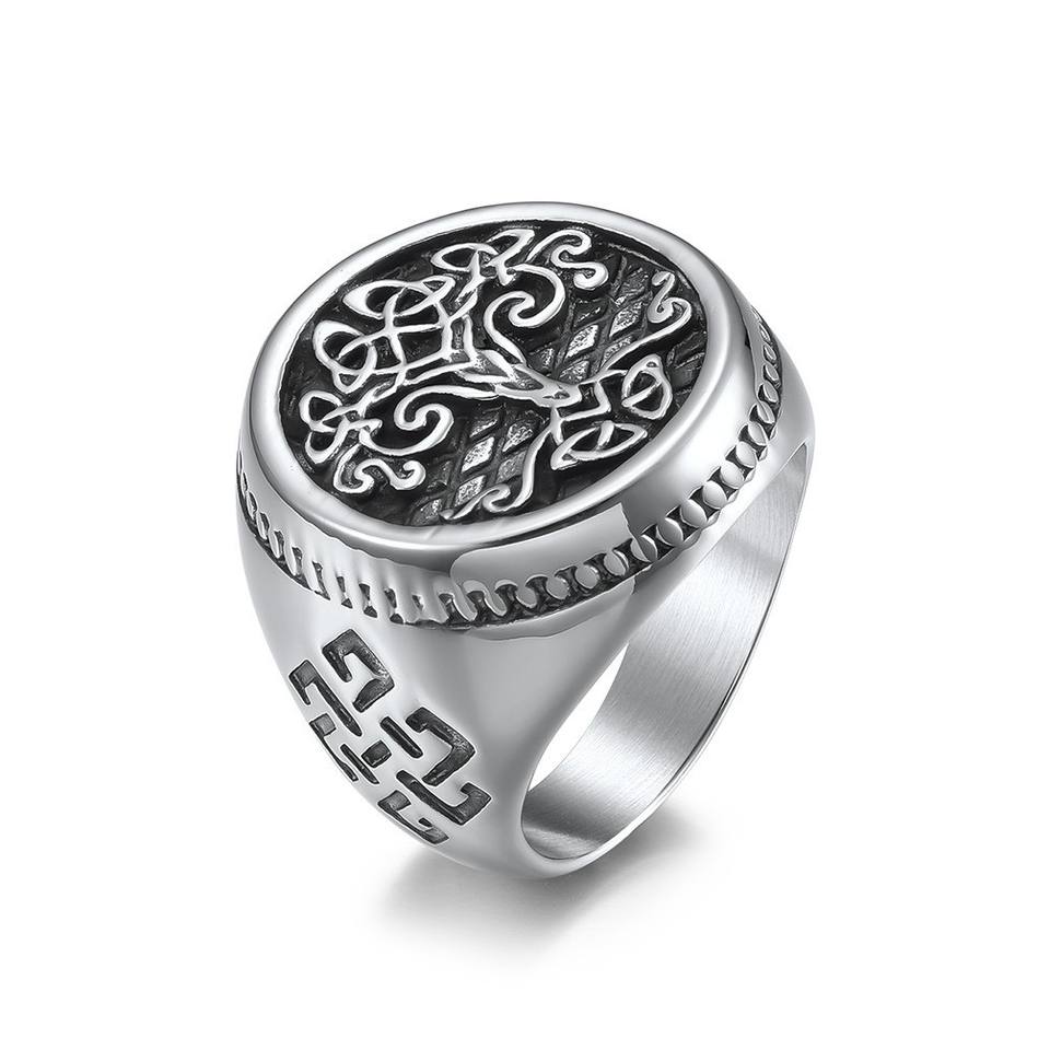 Anillo nórdico celta del árbol de la vida de acero de titanio para hombre, joyería de regalo negra de acero