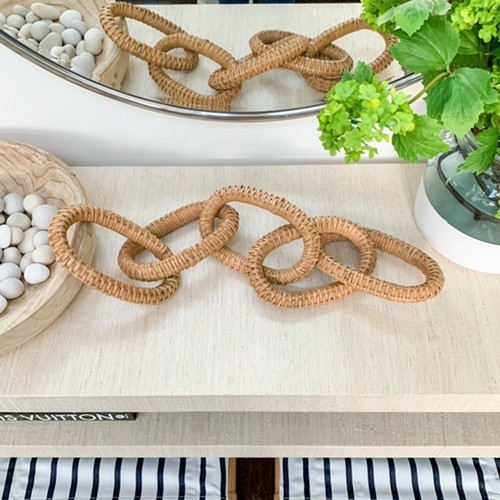 Cadena de madera envuelta de ratán de diseño nórdico, figura decorativa de 5 eslabones, cadena de eslabones de ratán, objetos decorativos hechos a mano