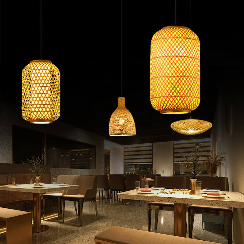 Lámpara Colgante Redonda de Mimbre y Bambú de Diseño Nórdico Moderno para Cocina y Comedor, Decoración del Hogar