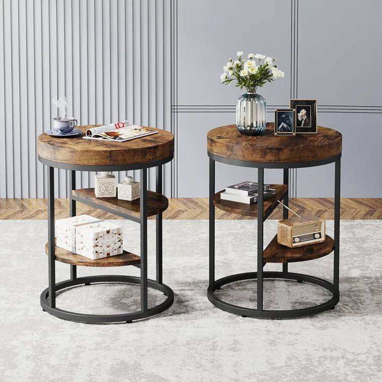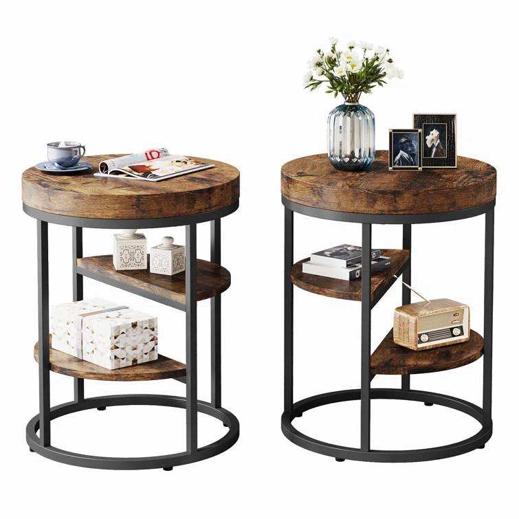 Juego de mesa de té de centro de entretenimiento nórdico, almacenamiento de madera rústica inglesa, mesas auxiliares de café, mesa auxiliar de sofá con estación de carga