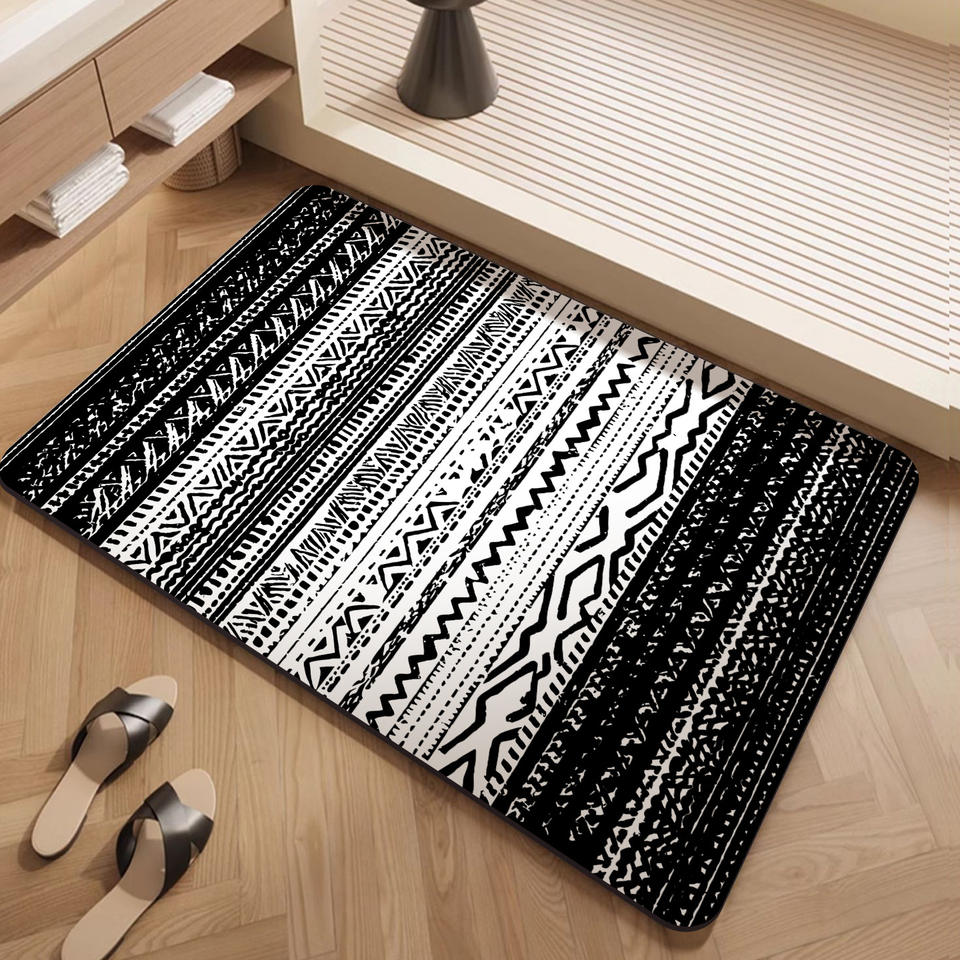 Alfombra de Baño Geométrica Nórdica Rectangular de Poliéster Absorbente
