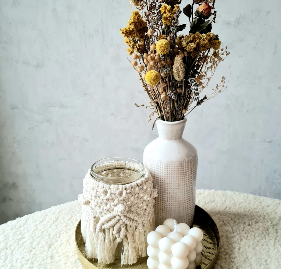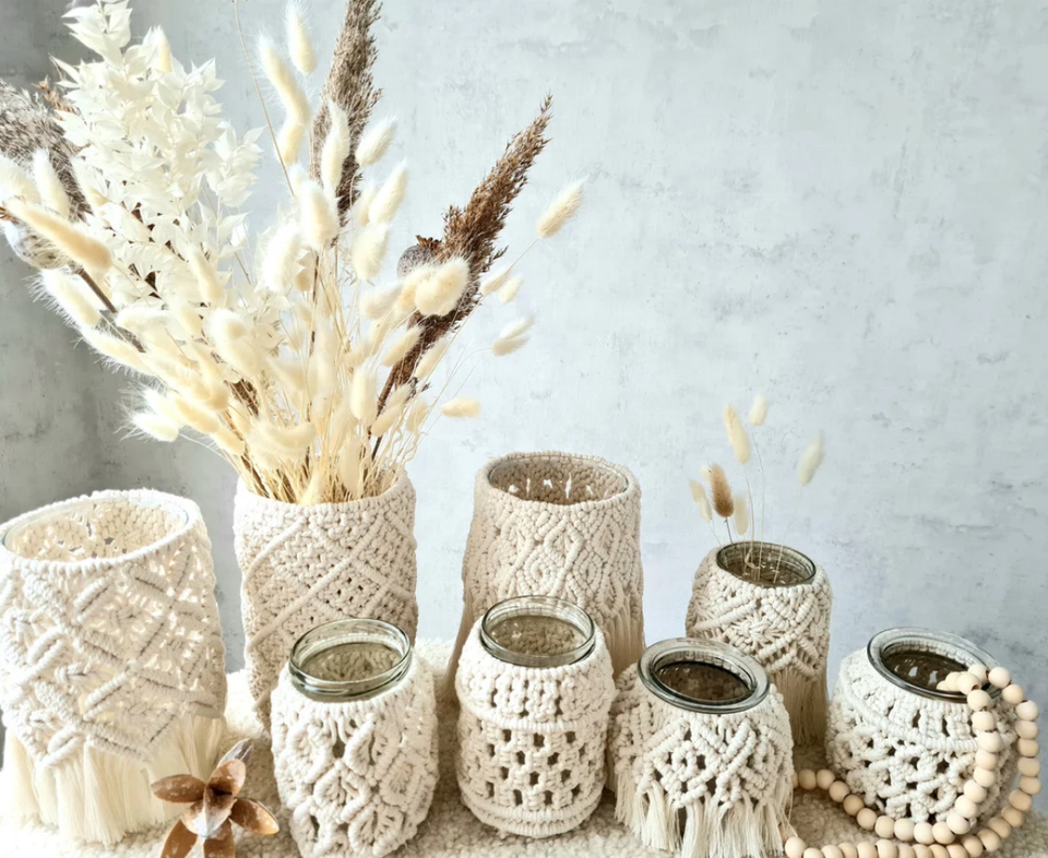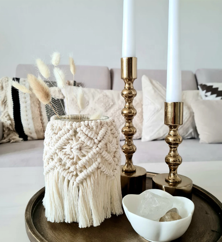Nombre del elemento:Jarrón de vidrio hecho a mano nórdico hogar decorativo macrame cubierta