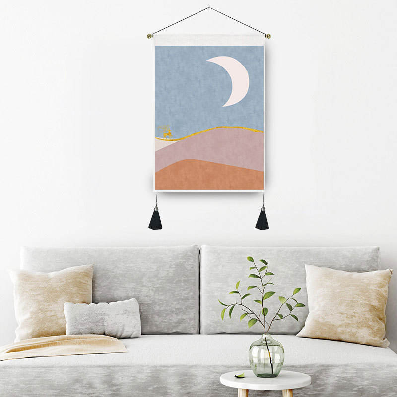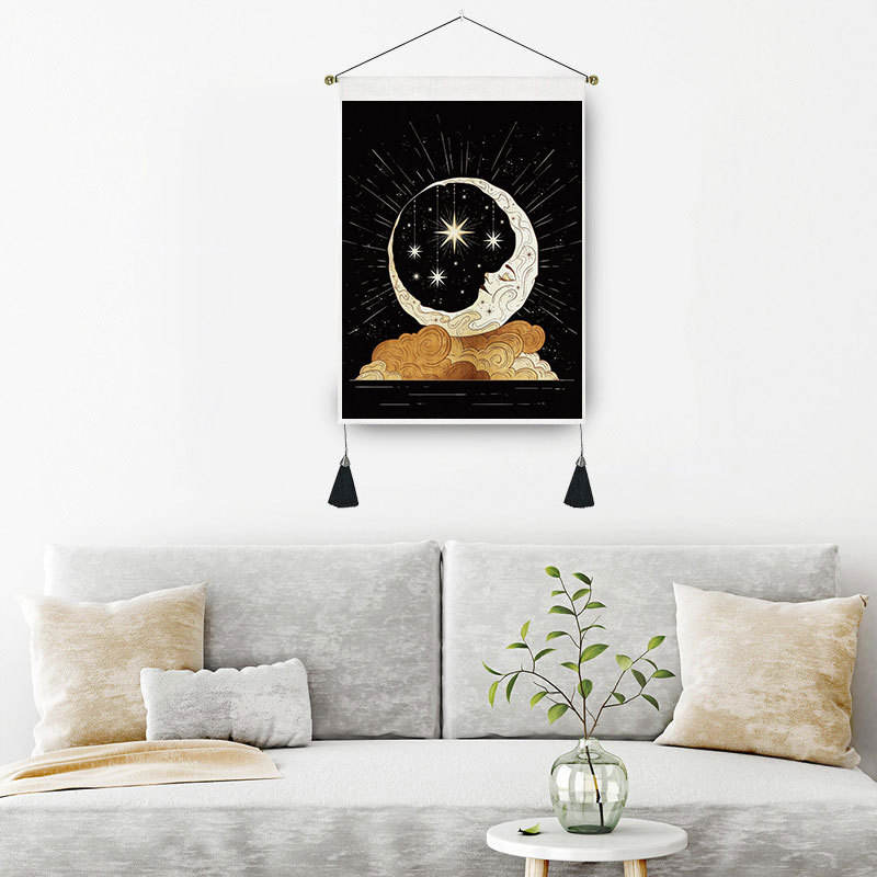 Tapiz nórdico para colgar en la pared del sol y la luna, tapiz de fase de sala de estar para el hogar, Ins Blue