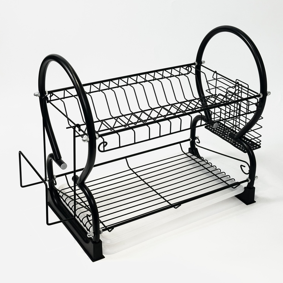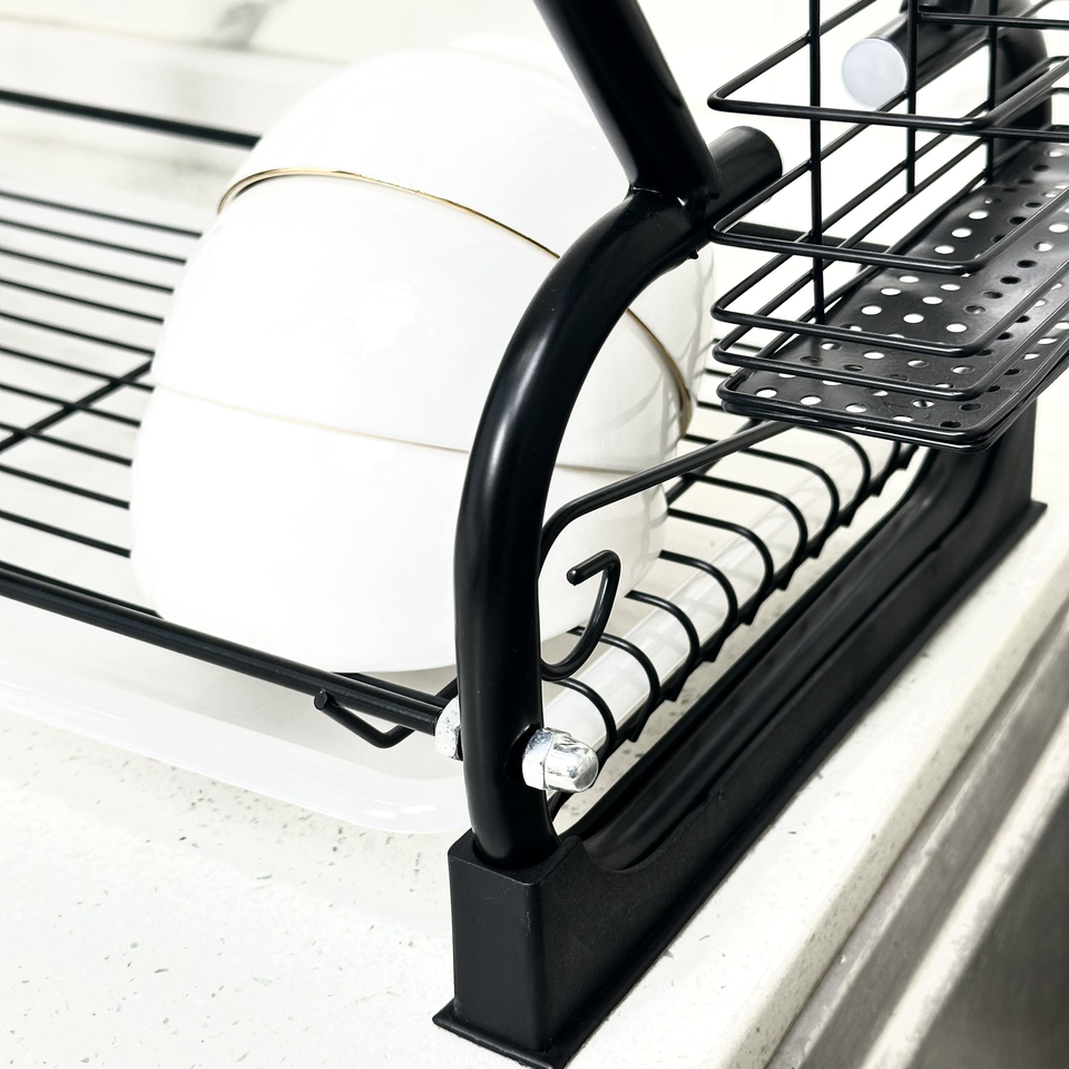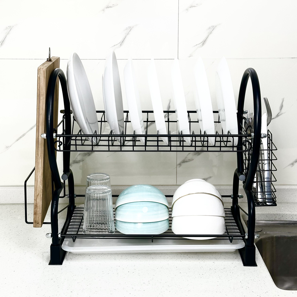 Escurridor de Platos Nórdico de Gran Capacidad de 2 Niveles, Escurridor de Platos Metálico para Armario con Soporte para Palillos y Platos