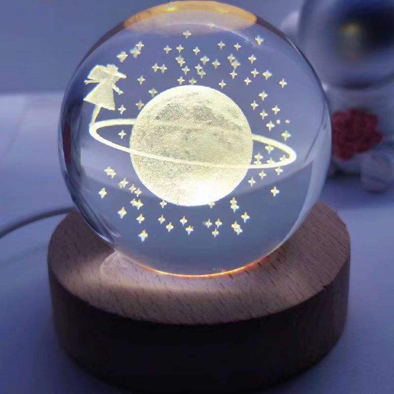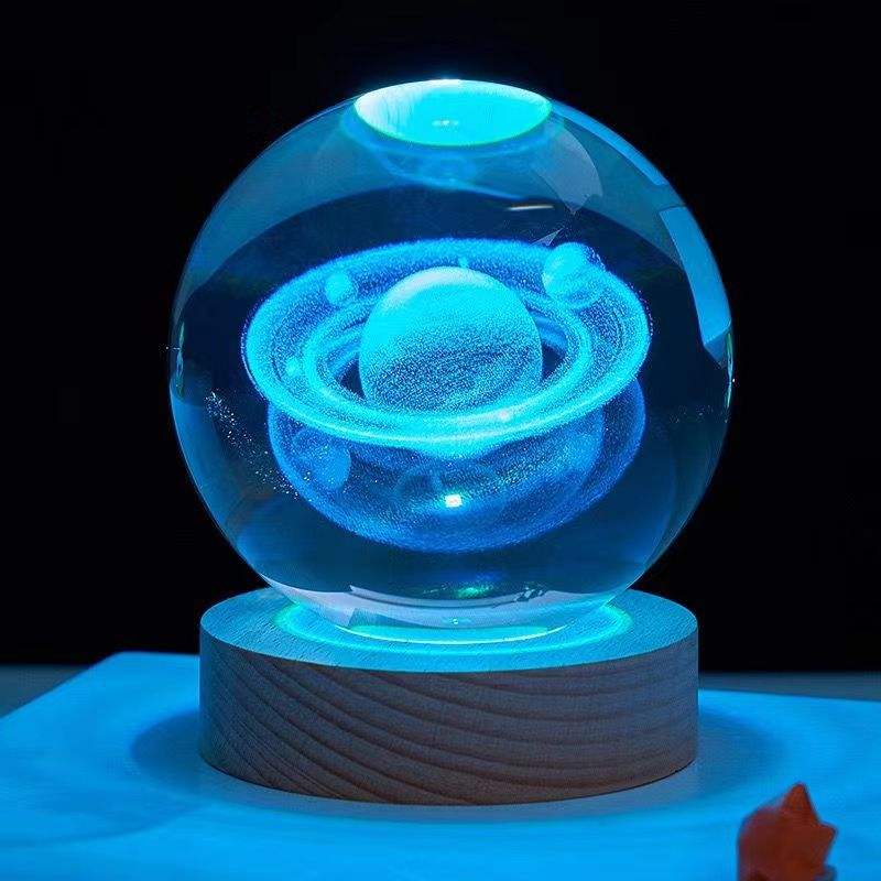 Láser grabado universo bola de cristal:3D Sistema Solar bola de cristal luz para casa esfera bola de cristal